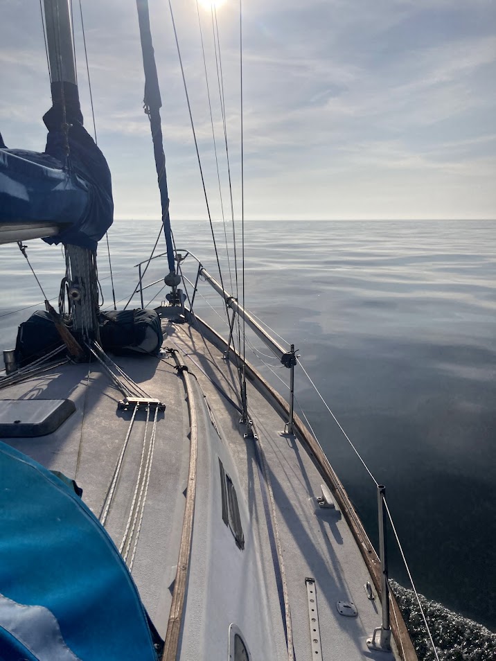 If you sail in the Northwest of England you have to accept that poor weather is going to be part of the agenda. However, the summer of 2023 saw strong westerly winds at two spring tide weeks preventing planned trips due to the potential of grounding in the trough between waves at the estuary mouth. We were rewarded for our patience in early September, with an Indian summer that coincided with a spring tide and at 1315 BST on Sunday 3rd September 2023, an hour ahead of High Water Liverpool, we made our departure on a stunningly beautiful day though not a breath of wind. The high-pressure weather system that dominated the country for the three days of our trip meant that any wind we were going to get was going to be moderate southerly, veering south easterly. This gave good anchorage options along the coast for an area that, in the prevailing north westerly winds, is usually an exposed lee shore.