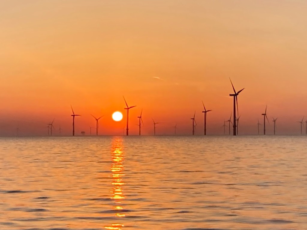 We continued along the coast and the succession of wind farms arriving at the Great Burbo Flats at 1800. This was quite an anchorage(53°.27.80N 003°.08.90), we were 3NM off the beach at New Brighton in 4m of water and had protection from the Great Burbo Bank and East Hoy Spit . It was very peaceful and other than seeing the occasional boat heading in and out of the buoyed channel of the River Mersey (approximately 3 NM away) there was no one around and we enjoyed a beautiful sunset. I didn’t sleep particularly well, while I was completely confident that the anchor was going to hold and that no shipping would stray from the Mersey across the Great Burbo Bank, I felt a certain vulnerability due to the exposure. My anxiety peaked at around 0530 when the boat went from a static state to what felt to me like a violent rocking (it really wasn’t) and I could hear another boats engine. I leapt out of my bunk to see that this had been caused by the wash of a fast ferry leaving Liverpool. The ferry was probably 4 NM away but with the glass like sea state it had felt and sounded much closer.